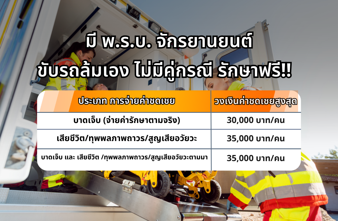 รถล้มเองไม่มีคู่กรณี เบิกพ.ร.บ. ได้เท่าไหร่?