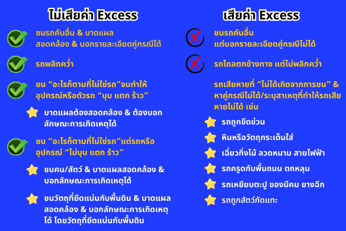 * ค่า excess = ค่าเสียหายส่วนแรกภาค "บังคับ"