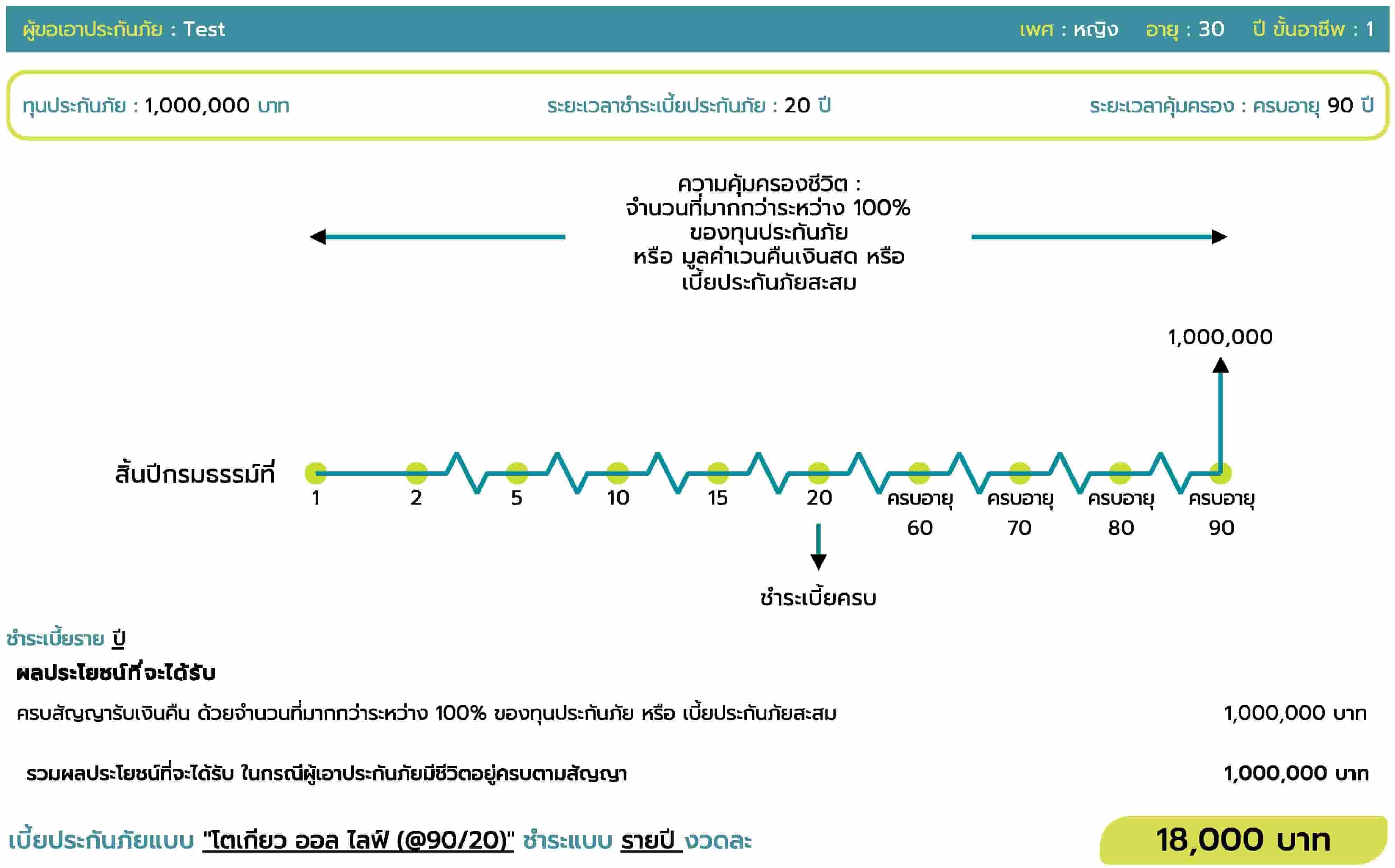 จ่ายเบี้ยเพียงปีละ 18,000 บาท (เบี้ยประกันจะแตกต่างกันที่อายุ)