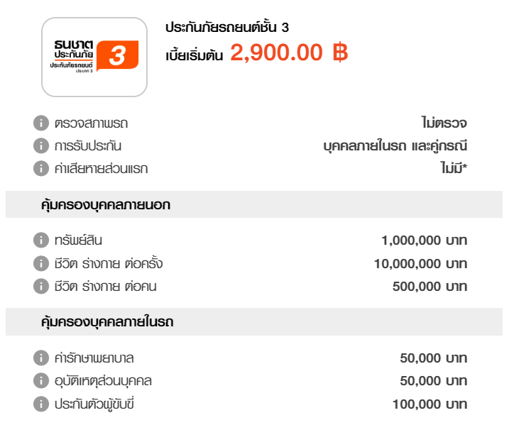 2. คุ้มครองทรัพย์สิน (รถและทรัพย์สินต่างๆ) ของคู่กรณี ถ้าเราเป็นฝ่ายผิด 1,000,000 บาท /ครั้ง