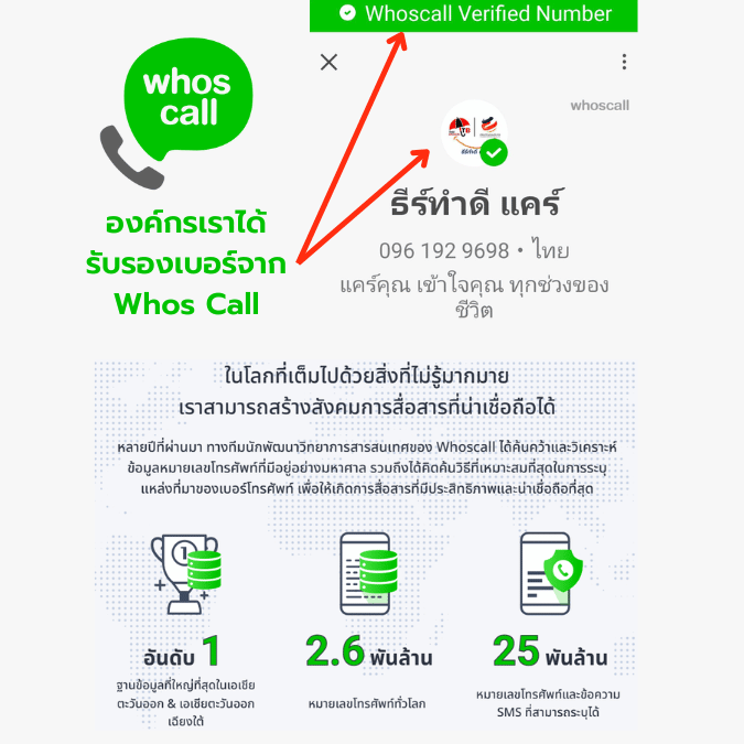 4. มีเบอร์องค์กร ที่ยืนยันจาก App Whoscall