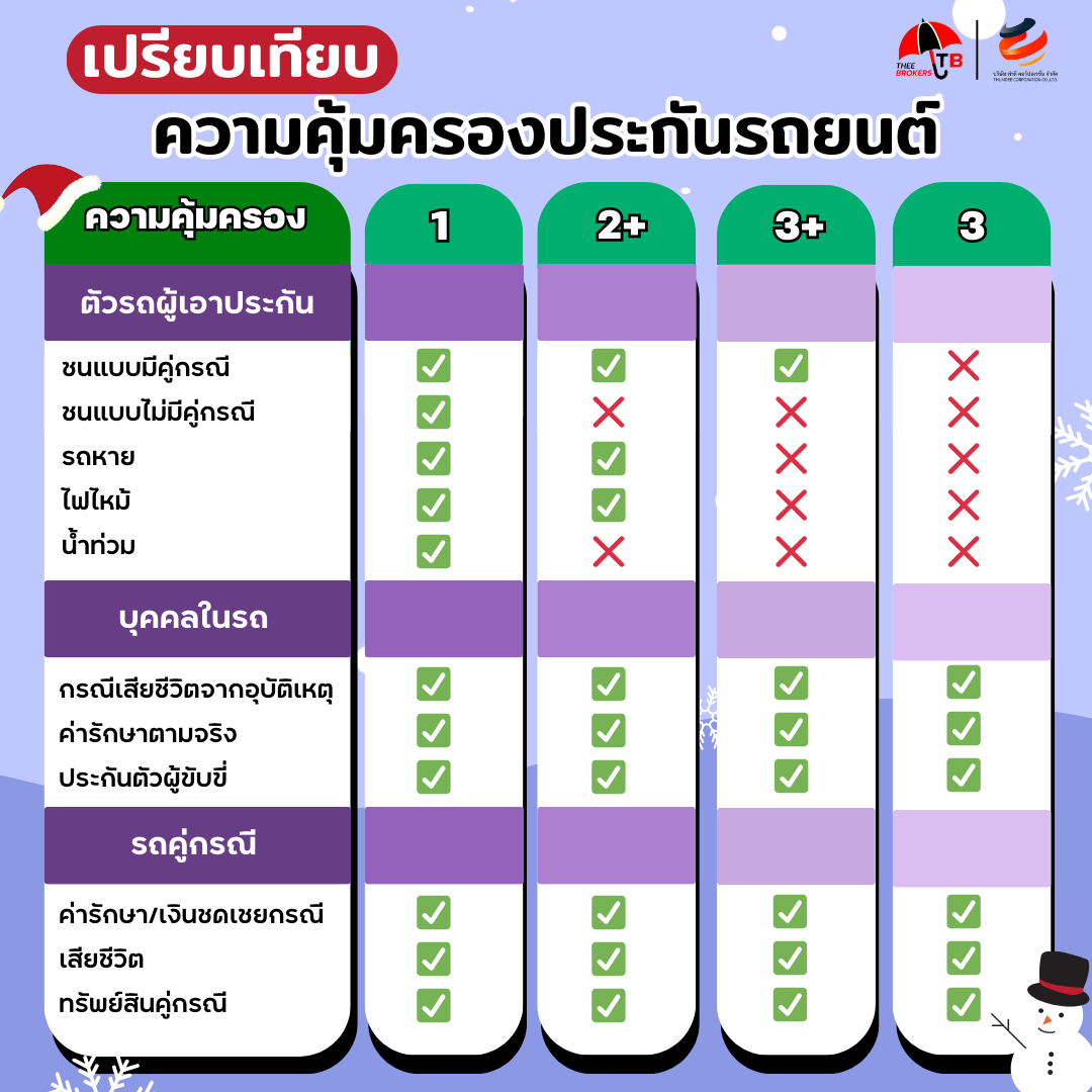 จะรับผิดชอบต่อความเสียหายที่เกิดขึ้นกับบุคคลในรถ และบุคคลภายนอก รวมถึงความเสียหายที่เกิดกับรถยนต์จากการเกิดไฟไหม้และการสูญหาย