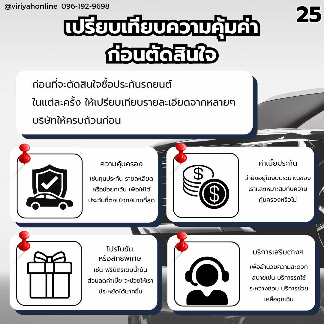 ไม่ใช่แค่ราคา แต่ควรพิจารณาความคุ้มครองและบริการเพิ่มเติม เช่น