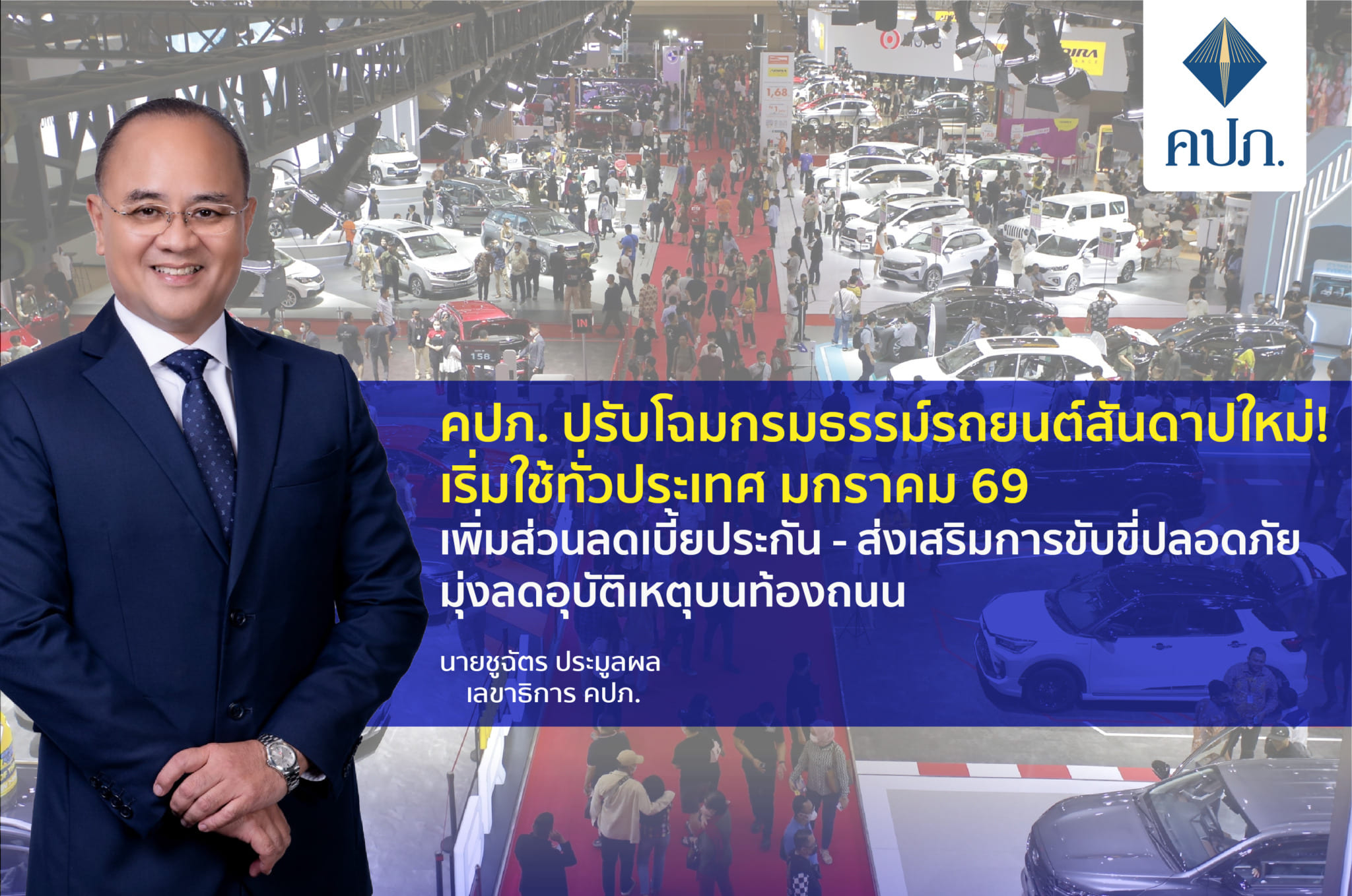 สำนักงาน คปภ. ยกระดับระบบประกันภัยรถยนต์ ปรับแบบกรมธรรม์ใหม่ บังคับระบุชื่อผู้ขับขี่พร้อมให้ส่วนลดพิเศษสำหรับผู้ขับขี่ดี มีผลเริ่มใช้ปี 2568