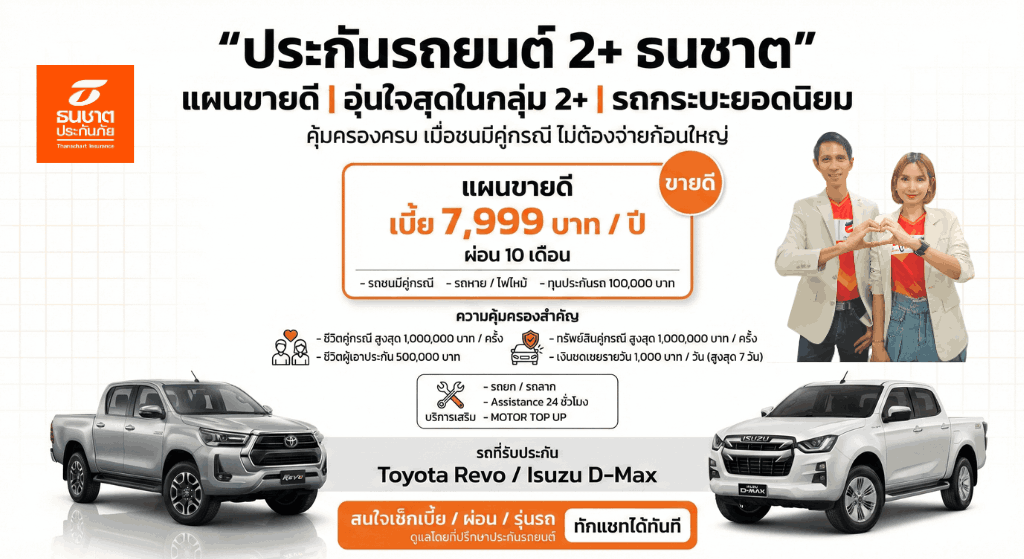 เบี้ยราคาประหยัด ได้ทุนประกันรถชนรถสูง คุ้มครองครอบคลุม
